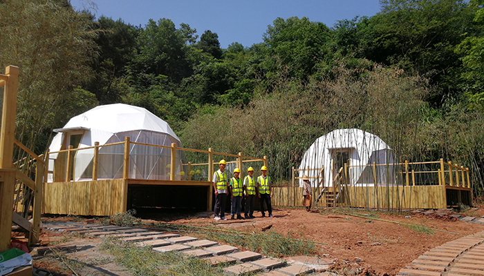 湖南生態球形篷,美麗大自然與奢華舒適的酒店完美結合,創造出令人心曠神怡的意境。原生態帳篷外形設計古樸,與周圍環境和諧共處,為居住者帶來獨特而難忘的度假體驗。