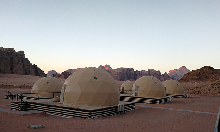 好來居球形篷房采用的是球面網殼架構, 網殼是一種曲面型空間網格結構,兼具網架結構和薄殼結構的特點,用材省,但受力性能相當好,安全系數極高,而且外形美觀、富于變化。曾被譽為“空間強,重量輕,有效果的設計” !球形篷房更具安全性、實用性和經濟效益,結構穩固、可抗風雪防震、抗風能力可達120km/hr,安全性完全可以抵御自然災害,而且還有多種規格可供選擇。