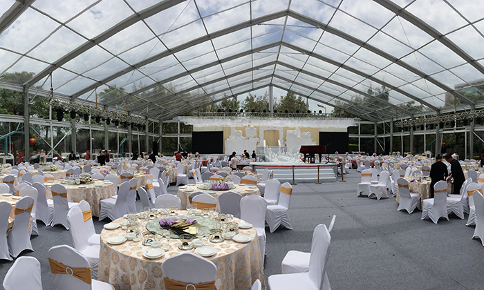 我司嚴格執行ISO9001的質量管理體系,確保不良產品的最小化及客戶滿意度的最大化。我們的的主要產品包括可移動的模塊化鋁合金支架篷房,有不同風格的篷房及裝飾可供選擇,篷房跨度從3米到60米。此外,還包括錐頂篷房和吊頂篷房,以及篷房配件,如照明燈具、地板、空調、桌椅及其它用于篷房內部的家具。篷房可廣泛應用于大小型活動、婚慶、展會、體育、酒店、航空和工業等其它領域。篷房框架結構為高強度鋁合金6061/T6型材,篷布為防水、阻燃的雙面PVC涂層聚酯纖維布,主體結構風載荷不少于100Km/h。