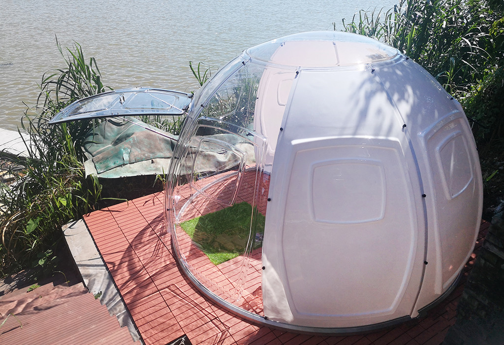 4.半球型結構:半球型的結構設計使其結構更加穩(wěn)定堅固,抗沖擊性能高更高,防護性能更好,無兜風面,可抗12級風。相比于市面上的普通PVC泡泡屋的有氣味,無阻燃且需要連續(xù)充氣產(chǎn)生噪音,本產(chǎn)品可快速拼接,室內(nèi)無氣味,可阻燃,噪音小,在野外使用時是一個值得信賴的安全庇護所;