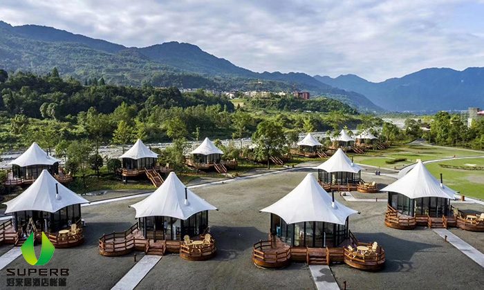 作為一間標準合格的帳篷酒店,它的使用壽命基本能達到30年或以上,可以用半永久建筑來稱呼。其實維護不是帳篷酒店的主體,而是它內部裝修和電器家具以及周邊的環境。所以說,維護帳篷酒店的成本并不高。