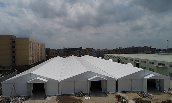 倉儲帳篷在輕松搭拆快速建成的同時,可配套集成門禁、安保、供電、供暖、通風(fēng)等配套設(shè)備。安全方便,可配套安裝固定倉庫所具有的各種配套設(shè)備,輕松解決淡旺季倉庫問題。