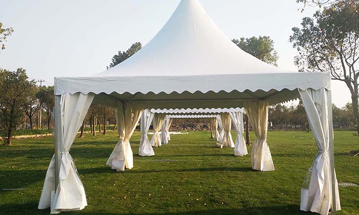我司嚴格執行ISO9001的質量管理體系,確保不良產品的最小化及客戶滿意度的最大化。我們的的主要產品包括可移動的模塊化鋁合金支架篷房,有不同風格的篷房及裝飾可供選擇,篷房跨度從3米到60米。此外,還包括錐頂篷房和吊頂篷房,以及篷房配件,如照明燈具、地板、空調、桌椅及其它用于篷房內部的家具。篷房可廣泛應用于大小型活動、婚慶、展會、體育、酒店、航空和工業等其它領域。篷房框架結構為高強度鋁合金6061/T6型材,篷布為防水、阻燃的雙面PVC涂層聚酯纖維布,主體結構風載荷不少于100Km/h。