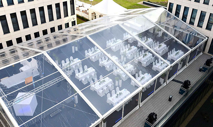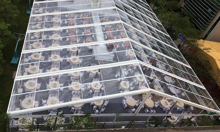 我司嚴格執行ISO9001的質量管理體系,確保不良產品的最小化及客戶滿意度的最大化。我們的的主要產品包括可移動的模塊化鋁合金支架篷房,有不同風格的篷房及裝飾可供選擇,篷房跨度從3米到60米。此外,還包括錐頂篷房和吊頂篷房,以及篷房配件,如照明燈具、地板、空調、桌椅及其它用于篷房內部的家具。篷房可廣泛應用于大小型活動、婚慶、展會、體育、酒店、航空和工業等其它領域。篷房框架結構為高強度鋁合金6061/T6型材,篷布為防水、阻燃的雙面PVC涂層聚酯纖維布,主體結構風載荷不少于100Km/h。