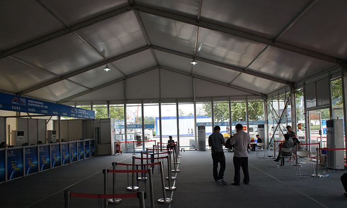 我司嚴格執(zhí)行ISO9001的質量管理體系,確保不良產品的最小化及客戶滿意度的最大化。我們的的主要產品包括可移動的模塊化鋁合金支架篷房,有不同風格的篷房及裝飾可供選擇,篷房跨度從3米到60米。此外,還包括錐頂篷房和吊頂篷房,以及篷房配件,如照明燈具、地板、空調、桌椅及其它用于篷房內部的家具。篷房可廣泛應用于大小型活動、婚慶、展會、體育、酒店、航空和工業(yè)等其它領域。篷房框架結構為高強度鋁合金6061/T6型材,篷布為防水、阻燃的雙面PVC涂層聚酯纖維布,主體結構風載荷不少于100Km/h。