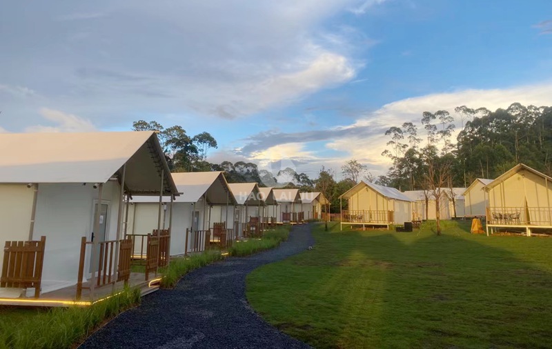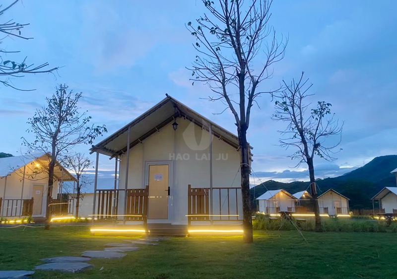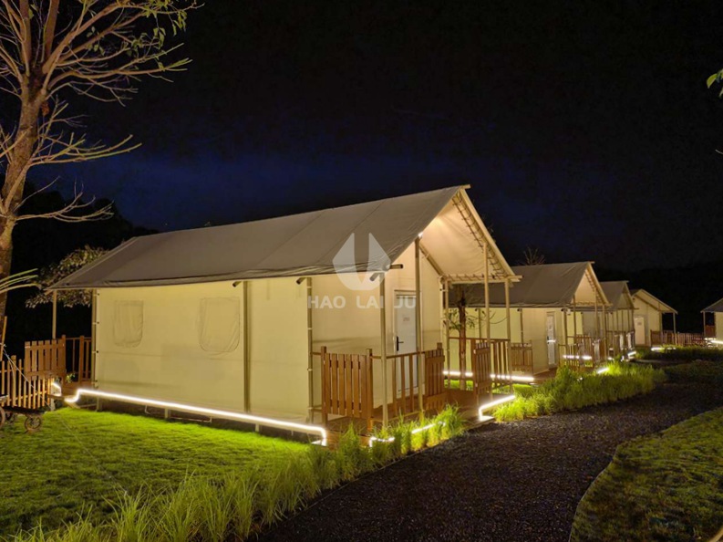3、天幕小屋組合式金屬構件、牢固安全、拆裝方便。