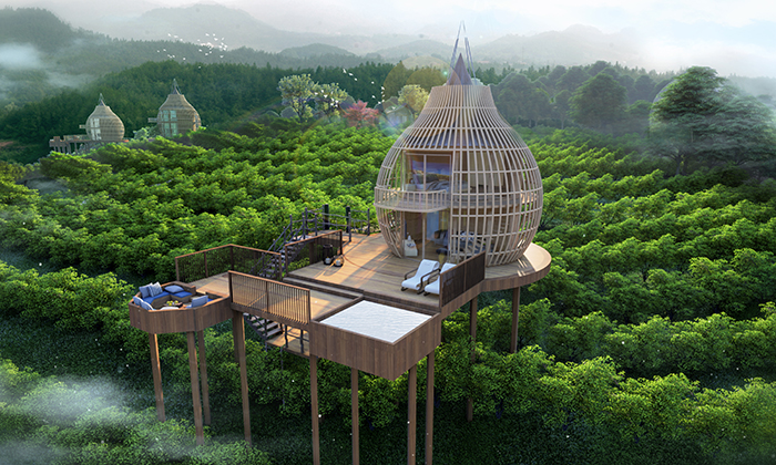 設計理念源于“鳥籠”結構整齊大氣的布局令人歸隱山林,敞開心扉,歸隱山林,具有開放式的玲瓏造型,賦予了它獨特的真實感和具有震撼力的形體,外觀即為建筑的結構,立面與結構達到了高度的統一。室內設有臥室和洗漱間,