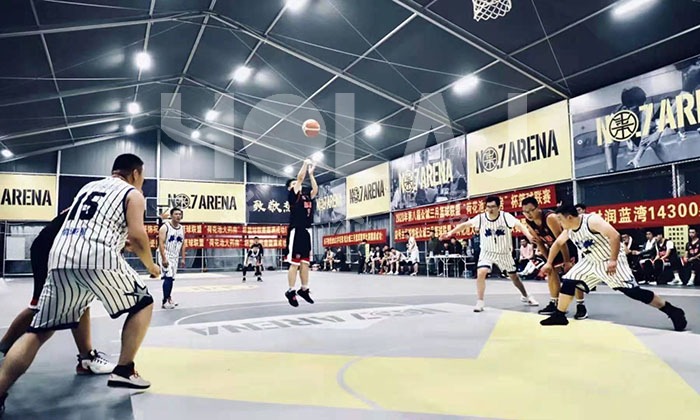 此外,由于我們好來居的籃球館篷房是一種臨時建筑,因此建造審批流程簡單,能夠快速投入使用。其模塊化設計能夠做到輕松搬遷并再次利用,而且還可以根據實際情況進行擴建。速派的籃球館篷房可以快速組裝,建造現場無需切割和焊接,不會產生建筑垃圾,非常適合室外籃球場的改造。