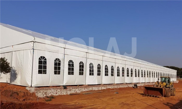 我司嚴格執行ISO9001的質量管理體系,確保不良產品的最小化及客戶滿意度的最大化。我們的的主要產品包括可移動的模塊化鋁合金支架篷房,有不同風格的篷房及裝飾可供選擇,篷房跨度從3米到60米。此外,還包括錐頂篷房和吊頂篷房,以及篷房配件,如照明燈具、地板、空調、桌椅及其它用于篷房內部的家具。篷房可廣泛應用于大小型活動、婚慶、展會、體育、酒店、航空和工業等其它領域。篷房框架結構為高強度鋁合金6061/T6型材,篷布為防水、阻燃的雙面PVC涂層聚酯纖維布,主體結構風載荷不少于100Km/h。